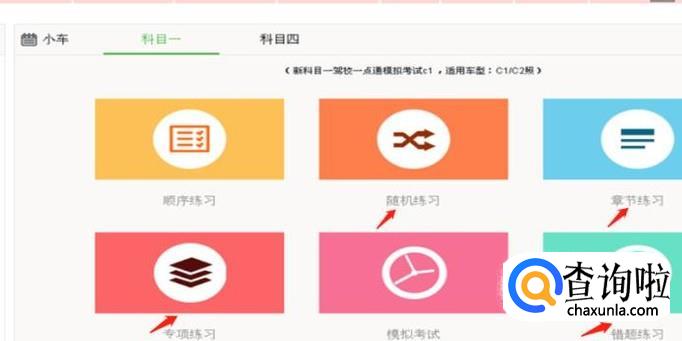 用鼠标先点击“顺序练习”这个链接,然后自己答题反复训练。然后以此类推,用鼠标分别点击“随机练习”、“专项练习”、“章节练习”、“错题练习”这些板块的链接,进行反复训练。