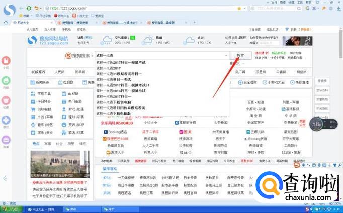 打开上网浏览器,在搜索栏输入“驾校一点通”几个字,然后用鼠标点击“搜索”这两个字。