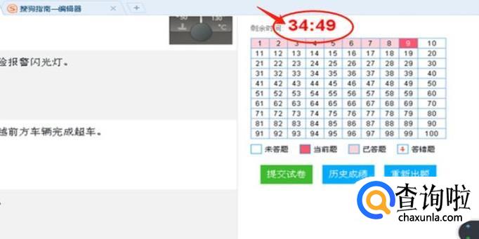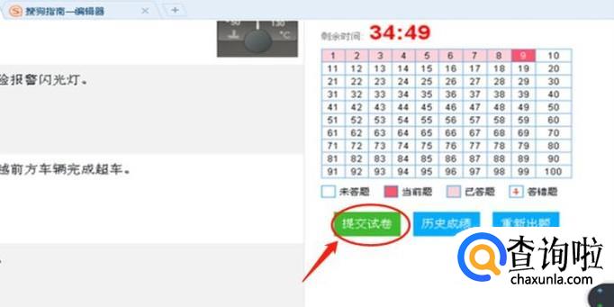 答完题确认一下是否答满了100道题,再确认一下确实没有需要更改的题后,点击提交试卷按钮进行交卷。