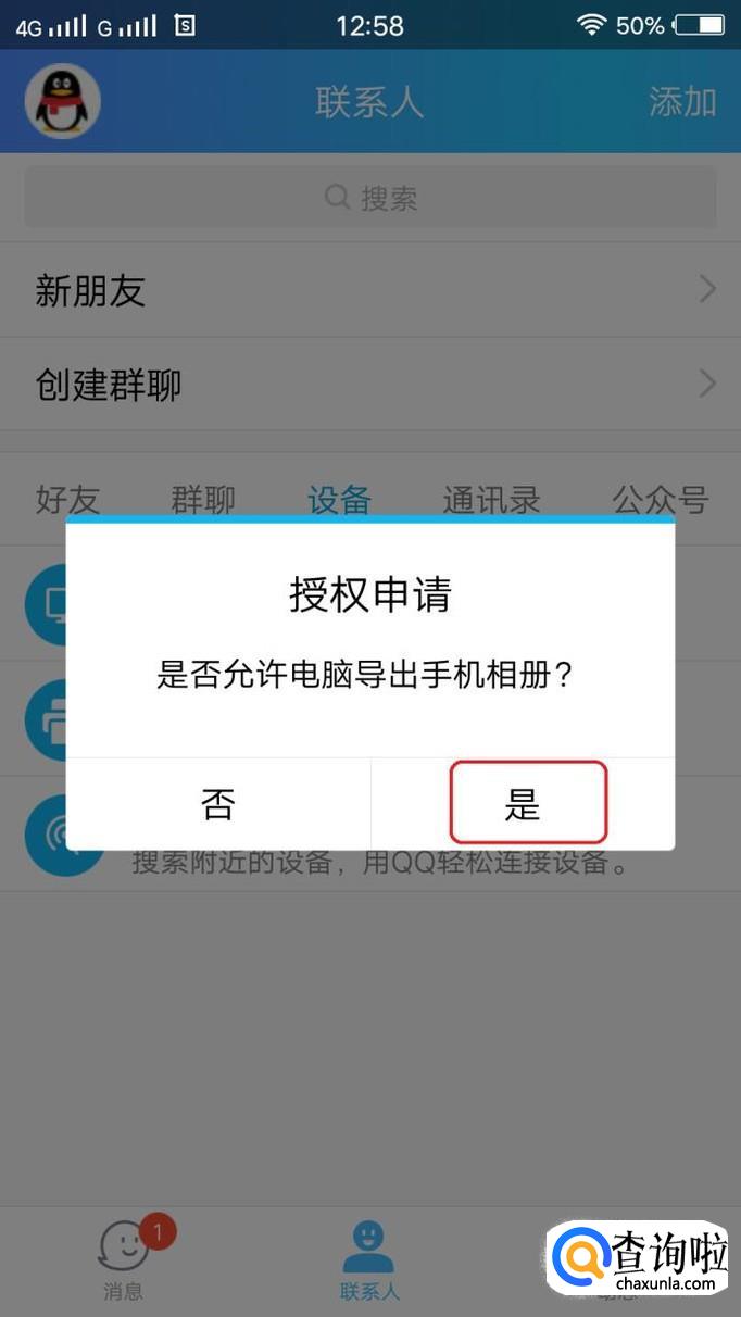 此时,手机上会有“授权申请”出现,我们点击“是”。