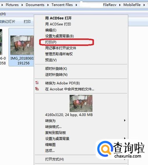 另外,我们此时(第2步中)已经从手机相册导出相片到电脑了,此时,打开导出相片所在的文件夹,右键点击“打印”也能打印相片。