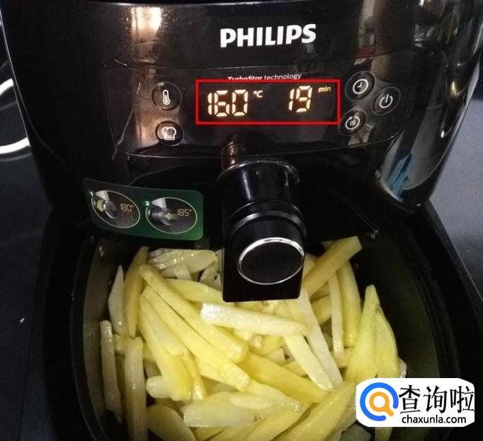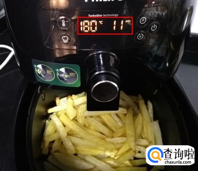 时间到了以后,再调节温度180°,时间11分钟,剩下的只是等待了,中途也可以拉出炸锅翻一下土豆条;