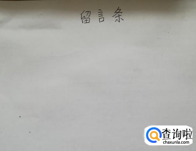 首先,我们准备一张写留言条的空白纸,在空白纸的上方居中写“留言条”三字。