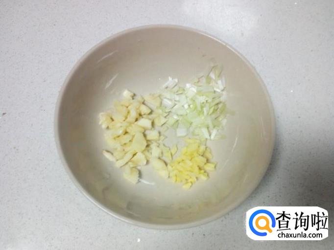 碗里放入淀粉,兑水,勾成芡汁,备用。