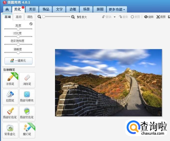 打开美图秀秀后把你保存好的图片直接拉进美图秀秀里会出现很多的功能,如图