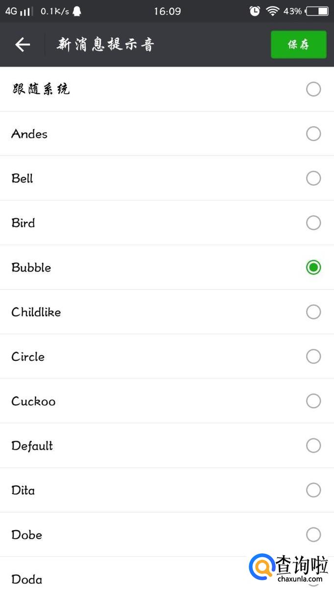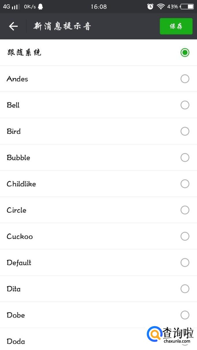 默认的提示音就是跟随系统。选择一个你喜欢的提示音就OK了。