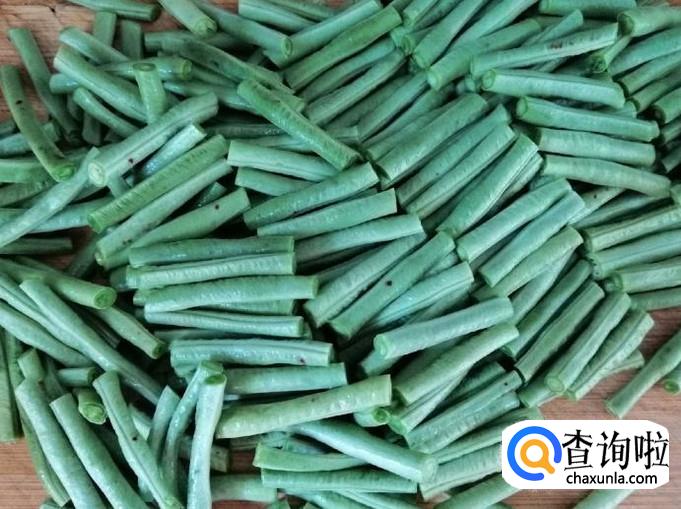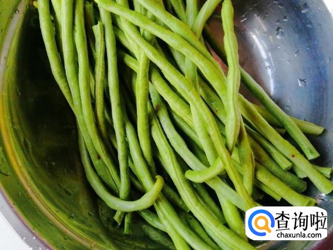 选新鲜的豆角一小把,放入洗菜盆进行冲洗,然后在清水里泡会,主要为去蔬菜农药残留,最后再过水去掉两头,切成一寸长的豆角段备用。
