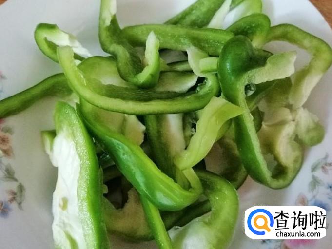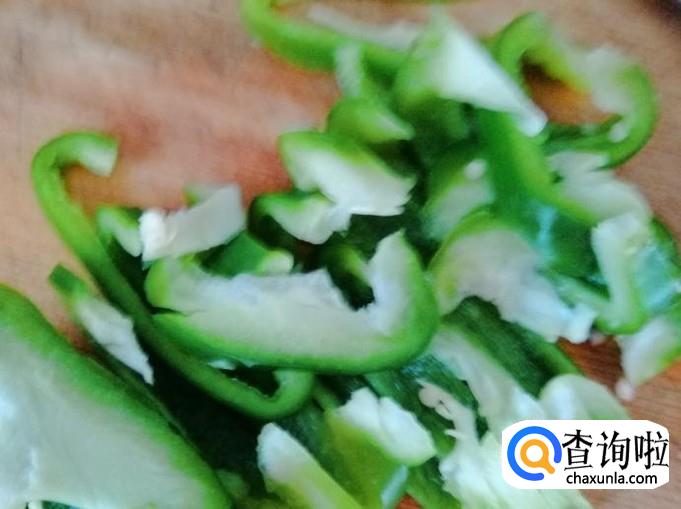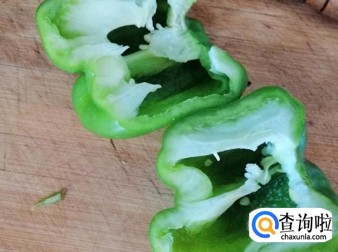 这一步我们把菜椒从中间切开,去菜椒籽和根部硬把部分,然后再把菜椒切丝或条,自己掌握就行,切细的话晚入锅会,条的话早入锅会,切好装盘备用。