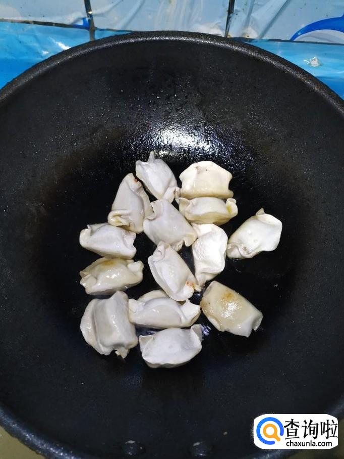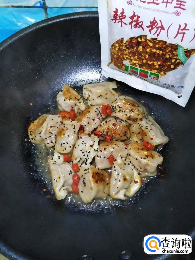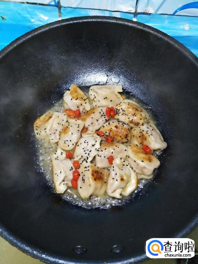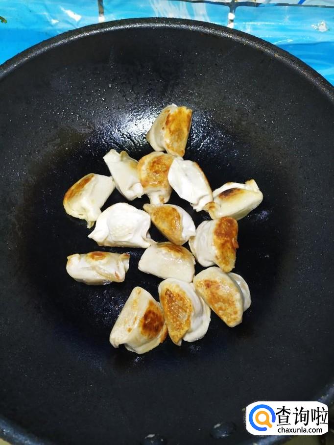 平底锅放入适量油,油热后,将速冻水饺,放入锅中稍微煎一下。