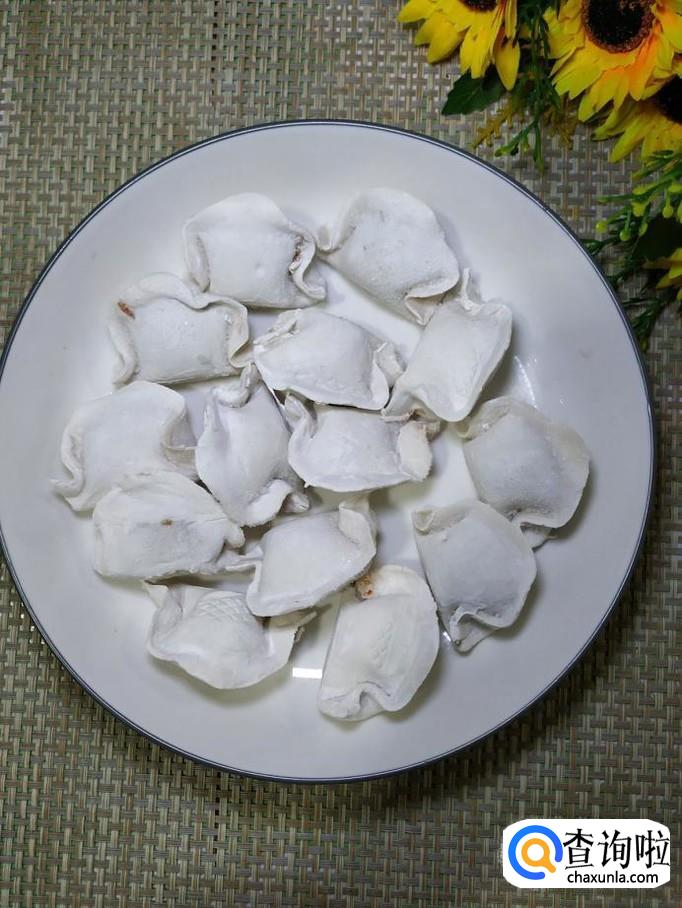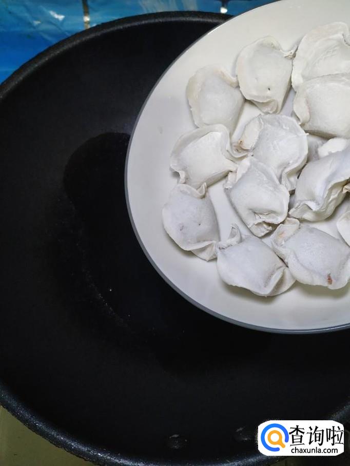 准备适量速冻水饺,放入盘子中,稍微解冻一下备用,自己做的水饺也是可以的。