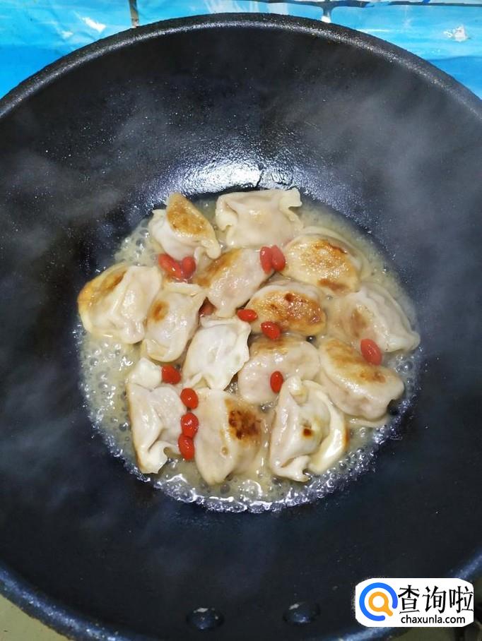 加入一小碗清水,清水的量,刚刚没过水饺。