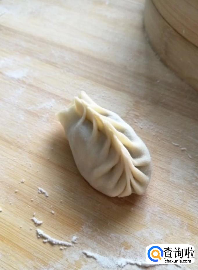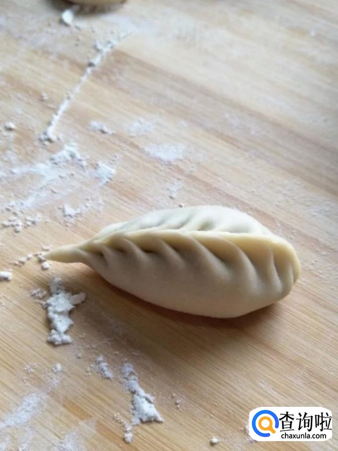 最后我们把另一端收一下口,捏住就可以了,就这样好看又好吃的柳叶饺子就制作完成啦!