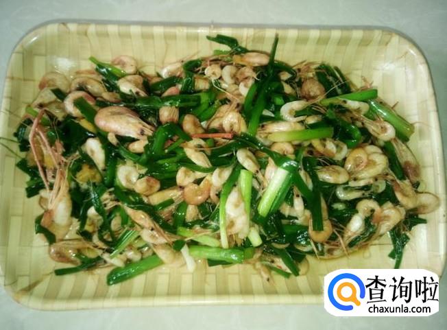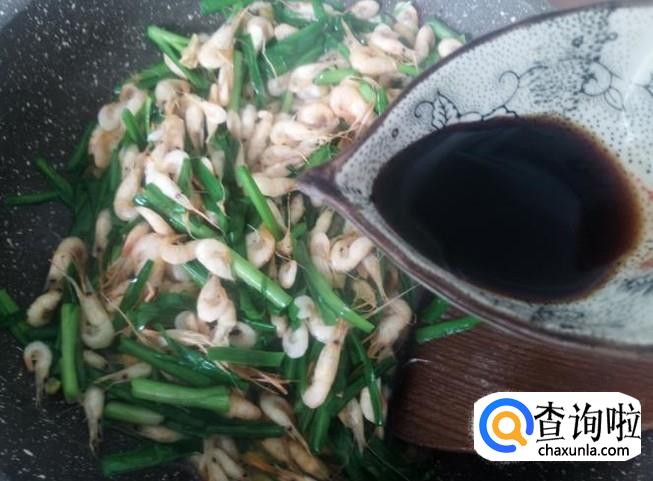 小虾200克,韭菜100克,姜蓉适量,生抽1勺。