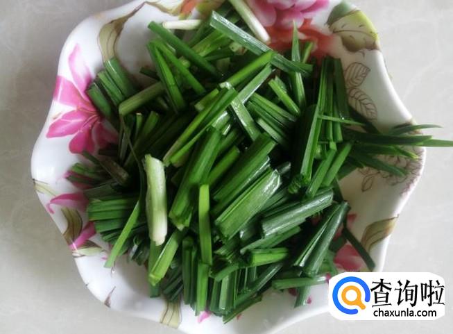 首先把小虾清洗干净捞上来沥干水份放到碟子备用,韭菜清洗干净,然后切成一段段。