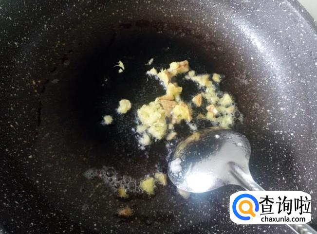 开火下油,放姜蓉进去爆香。