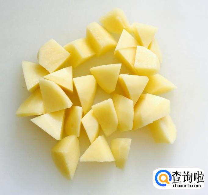 土豆一个清洗干净表皮的泥沙,削去外皮切成大小均匀的滚刀块