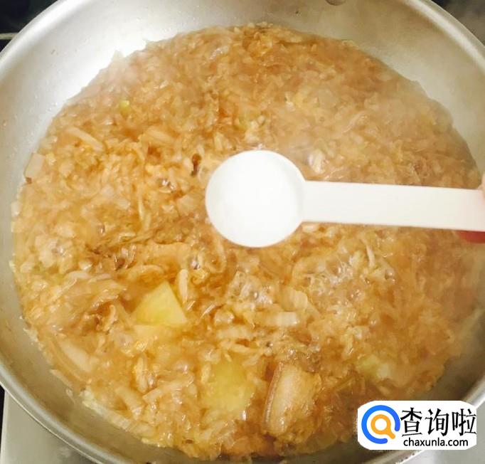 加入适量的清水和盐调味儿盖上锅盖炖煮20分钟左右,食材熟透后大火收干汤汁即可出锅