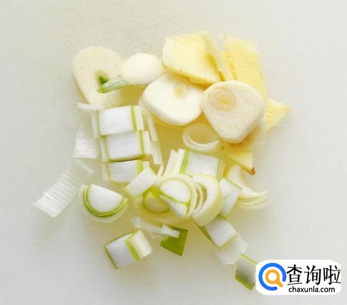 葱、姜、蒜剥去外皮清洗干净分别切成葱花、姜片、蒜片