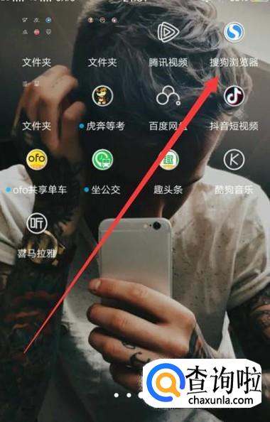 打开手机,找到搜狗搜索,点击并进入,如图所示。