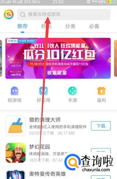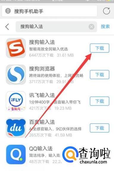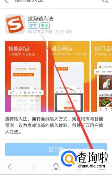 进入之后,在图示位置搜索“搜狗输入法”,如图所示。