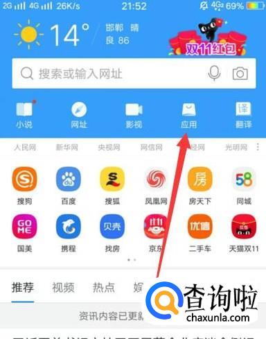 进入之后,点击图示位置的“应用”,如图所示。