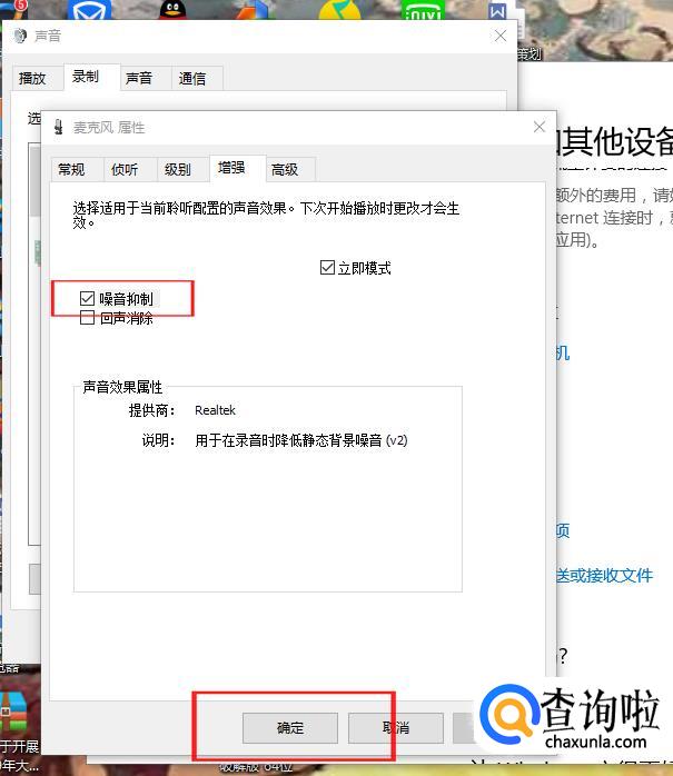 勾选噪音抑制,然后点击确定就可以了。