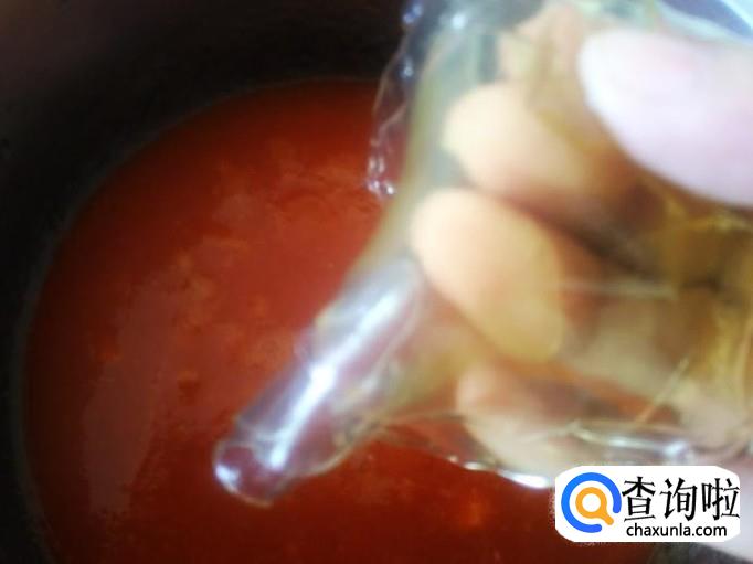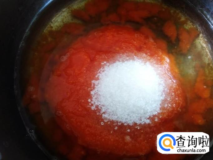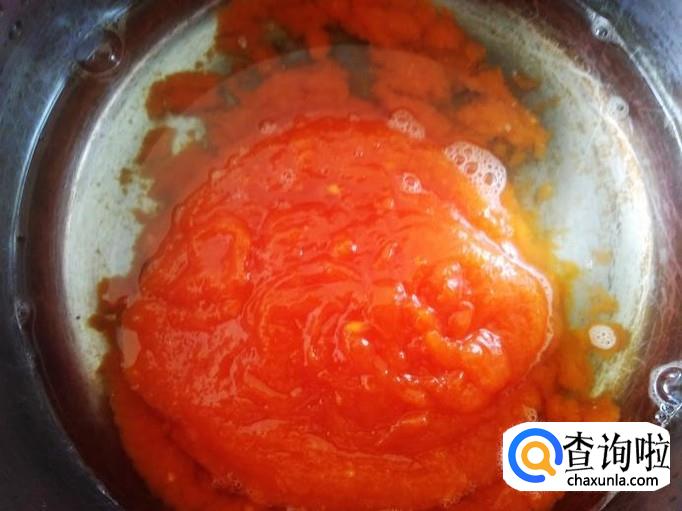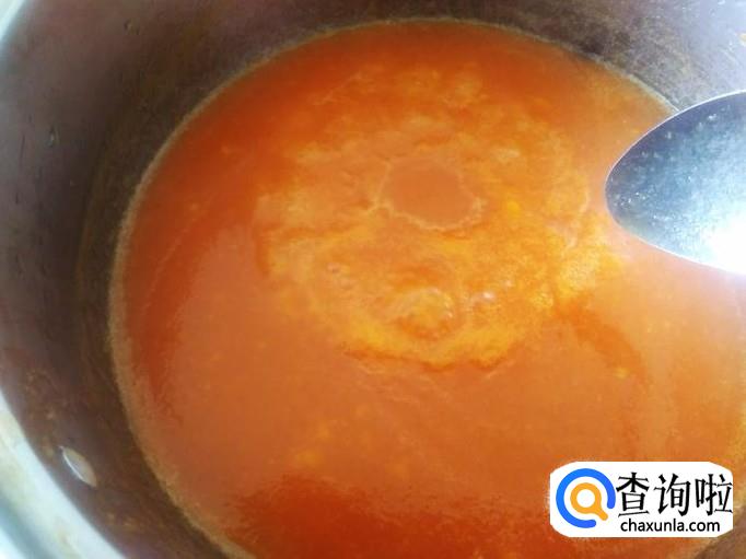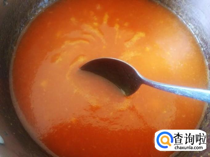 把木瓜酱倒到锅里,加1碗水适量的白糖进去。