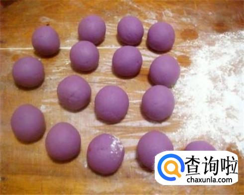 洗干净把调制好炼乳的紫薯做成一个个大小差不多的汤圆馅。