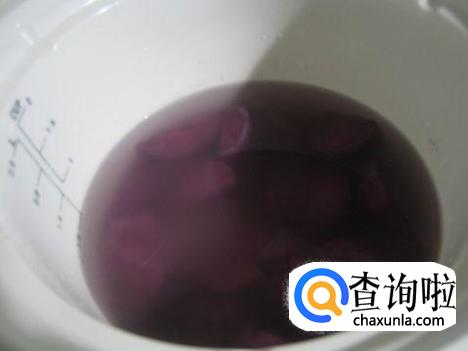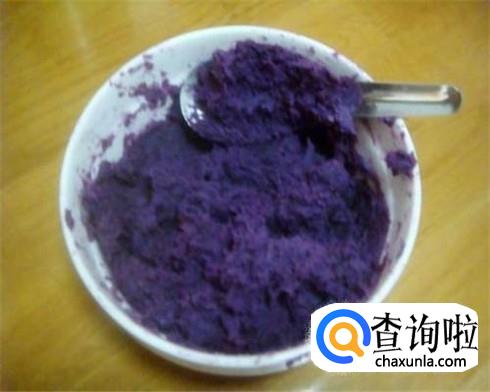 首先把紫薯蒸熟再放在一个大碗里用勺子压碎备用。
