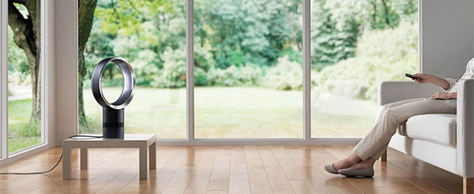 无叶风扇利用喷气式飞机引擎及汽车涡轮增压中的技术,通过底部的吸风孔吸入空气,圆环边缘的内部隐藏的一个叶轮则把空气以圆形轨迹喷出,最终形成一股不间断的冷空气流。重要的是这种空气流动比普通风扇产生的风更平稳。它产生的空气量相当于目前市场上性能最好的风扇。这款无叶风扇同时带有变频风速大小调节装置,方便用户根据实际情况调节风速的大小,风量均匀增加,不会冲击电压,能耗低,是普通风扇一半能耗。同时气流也会通过粘滞力带动圆环中的空气向前运动。两种效应叠加的结果理论上可以使实际吹出的空气量为流过基座空气量的整整15倍!