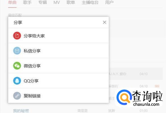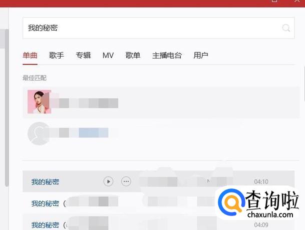 进入之后,在搜索框中搜索想要听的音乐,以“我的秘密”为例,如图所示。