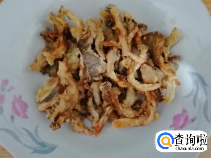 炒锅放油,油热后放入几块,裹满鸡蛋面糊的蘑菇,小火慢炸,用筷子勤搅动锅中的蘑菇,炸至两面金黄就可以了。