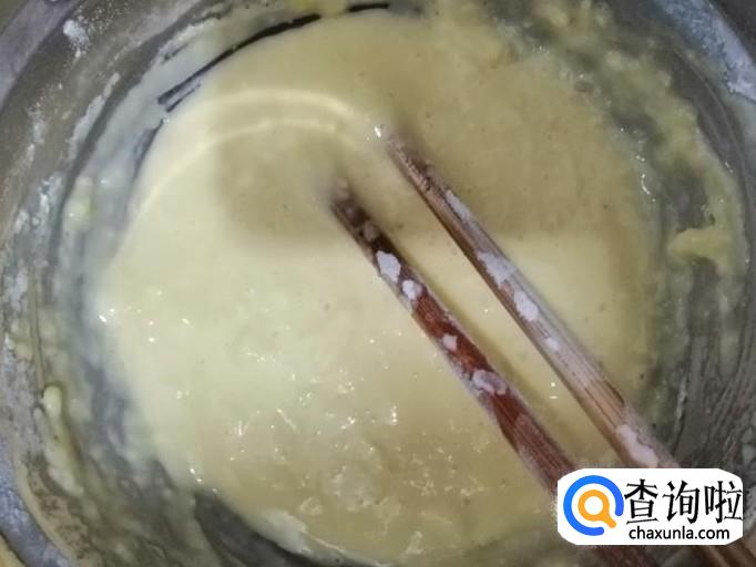 取适量面粉,把洗净的鸡蛋磕入碗中,用筷子搅拌均匀,一个鸡蛋基本,就可以把面糊调好,如果面糊稠的话,可以加入适量水,面糊调好待用。