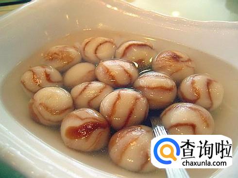 雨花石汤圆又名喜结良缘。其主材是糯米粉混合可可粉、绿茶粉等制作而成。由于其制成后如同漂亮的雨花石一般,象征着爱情的忠贞与幸福。