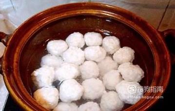 锅里烧一锅水,水烧开后,将鱼泥揉成鱼蛋的形状,然后放到烧开的水里。