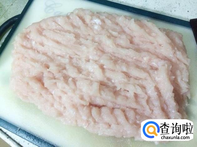 将花鲢鱼去头,将鱼肉与鱼骨分开,然后将切出来的鱼肉放到搅拌机里打成鱼泥。