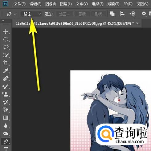在工具栏这里调出钢笔工具,模式修改为:路径