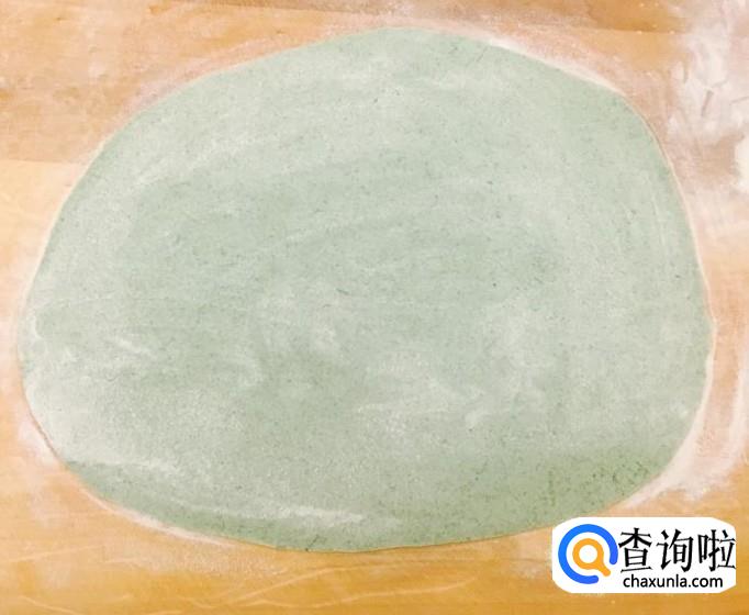 面皮上铺撒一层干面粉,用擀面杖卷起面皮重复推擀至自己喜欢的厚薄即可