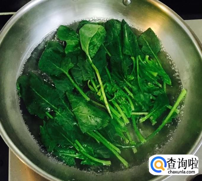 锅中加水煮沸放入菠菜焯水一1分钟捞出过凉水,并控干水分备用