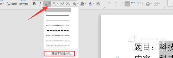 点击下划线旁边的箭头,并选择【其他下划线】;