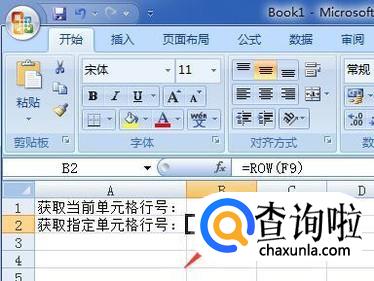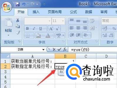 如果要获取指定单元格的行号,则在返回结果的单元格中输入=row(指定单元格),如图获取f9格所在的行,括号里就输入f9,确定后就返回了f9格所在的行为9。
