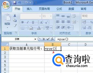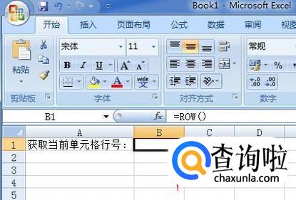 首先,我们来看看如何获取当前单元格的行号,如图在B1单元格中输入=row(),确定后就返回了B1格所在的行为1。