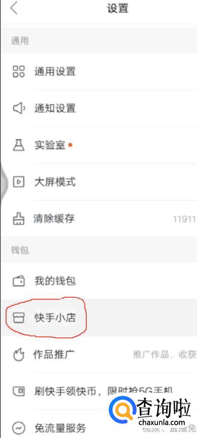 下拉找到快手小店。
