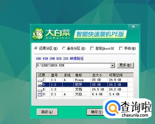 进入PE系统后,看到桌面有一个“大白菜一键装机”软件,双击打开它。