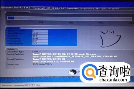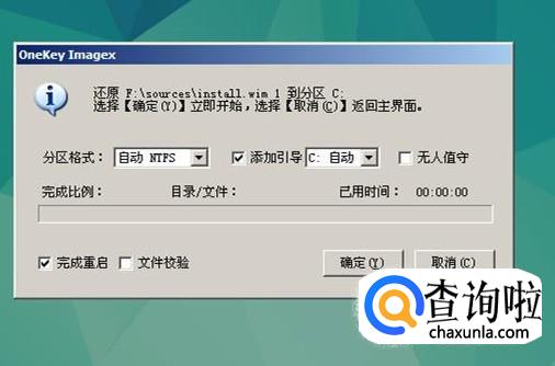 在出现的对话框中点击“确定”,就会开始向C盘复制安装文件,并会自动重启开始安装系统(重启之前记得把U盘拔下)。