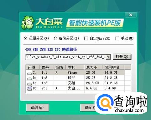 接下来在下面安装目标盘里选定C盘,点下面的“确定”。
