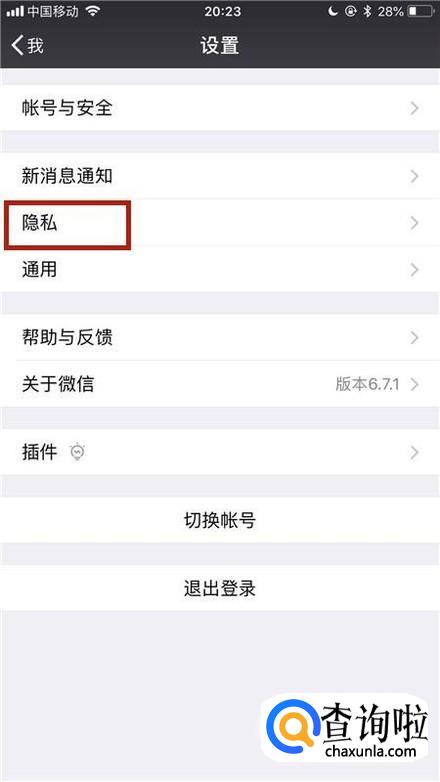 然后点击隐私,如下图所示。