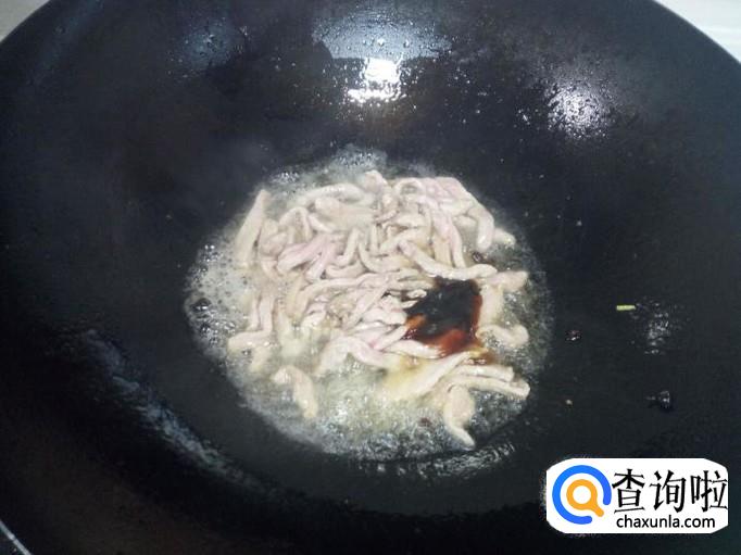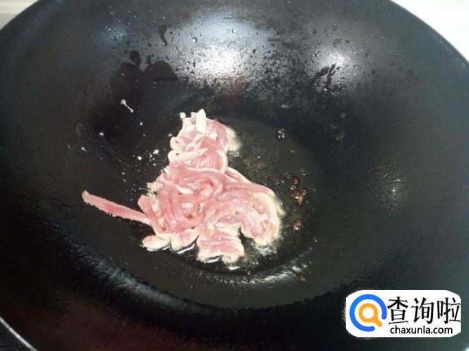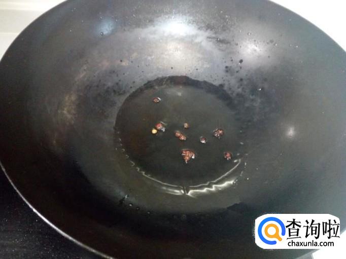 锅内放入油加热,油热后放入花椒爆锅。放入肉丝翻炒。