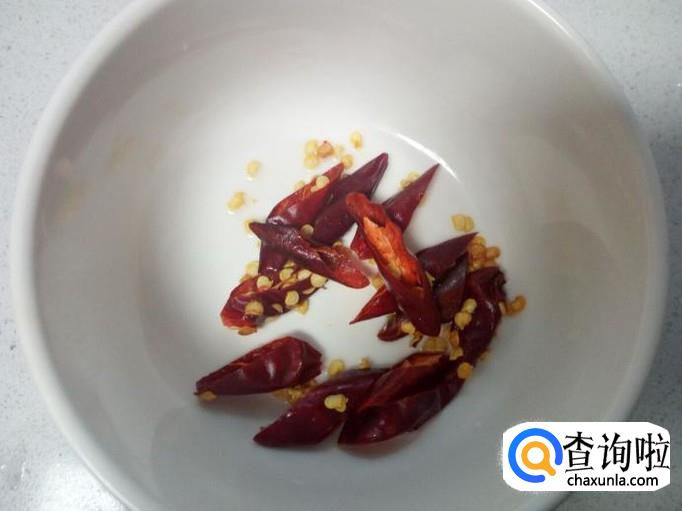 红干椒用水清洗干净,控干水分,斜刀切成段。切好葱,姜,蒜,备用。