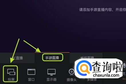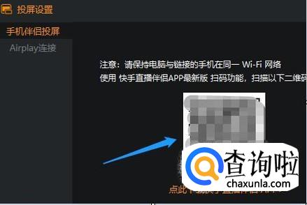 登录以后,我们在电脑端左下角点击“手机直播”-“投屏”,然后同样会弹出要求建立连接的窗口,为了方便我们同样扫描二维码的形式进行登录即可;